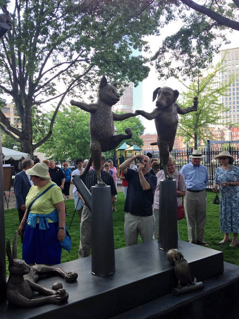 When the Animal Rescue League of Boston invited me to the unveiling of “Dancing with Spheres” I was thrilled at the idea of taking part in such a memorable occasion. The sun-drenched May afternoon welcomed supporters, four-legged friends, local politicians and the media to the League’s dog play yard at 10 Chandler Street in Boston for a grand celebration.
