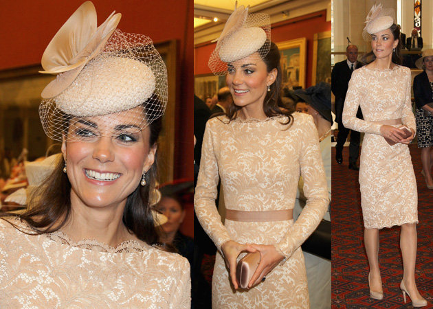 Finishing off her look, Kate added a Jane Taylor cocktail hat, a blush Prada clutch and her famous L.K. Bennett nude heels (I’m so getting a pair of these shoes). Although it was the Queen’s celebration, Kate Middleton stole the show wearing couture fit for a queen.