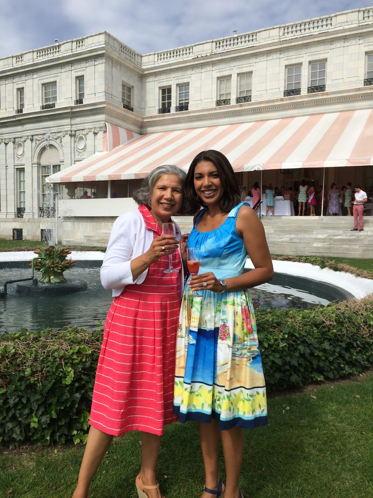 My mom and I were invited to this year’s event which paid homage to the 70th anniversary of the Preservation Society of Newport. Upon entering the stately manor that was commissioned in 1899 by heiress Theresa Fair Oelrichs, we were greeted by local media eager to capture the bevy of well-dressed arrivals (present company included). Next, we digested an exhibit from the Preservation Society’s costume archives as effervescent mimosas refreshed our palate. After a mingle on the terrace with some like-minded ladies, we sat for a delightful brunch of savory quiche, fresh fruit and free-flowing Champagne.