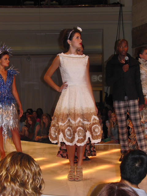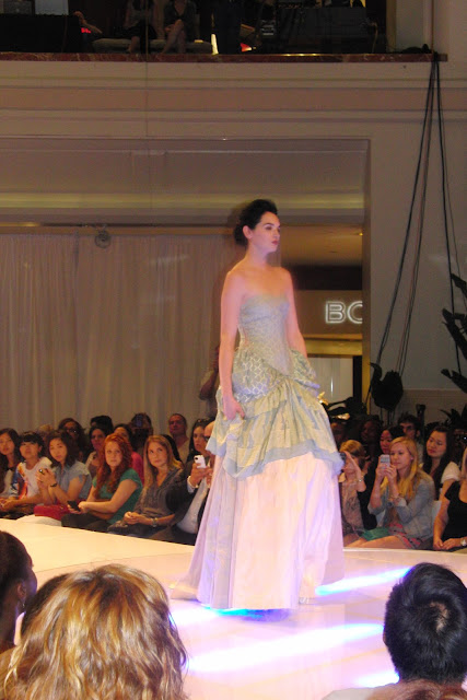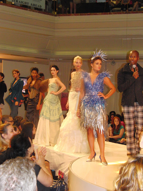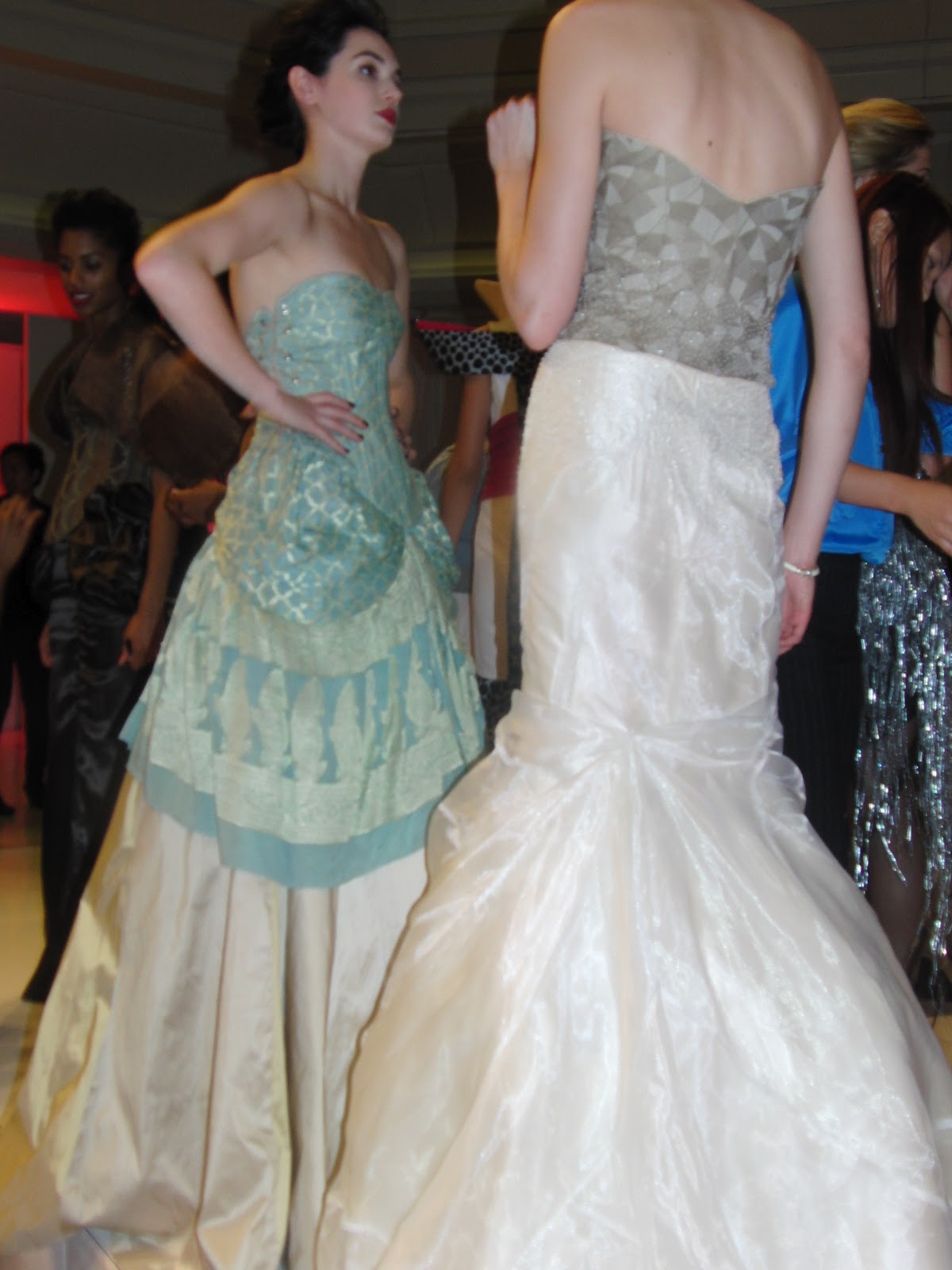 I visited the beautiful people at Salon Acote, G20 Spa & Salon and Rue La La’s event at Nanette Lepore — all were fun and fabulous. National Jean Company was next on my list, but with the increasingly chaotic crowd on Newbury Street, I was eager to take shelter and some shows at Copley Place. I met friends at an event sponsored by Boston Common magazine where we mingled, indulged in the mixology and gushed over gorgeous garments from Neiman Marcus, Elie Tahari, Vince and Wolford. The most inspiring show of the evening was from the students at the Massachusetts College of Art and Design. Bravo, kids!