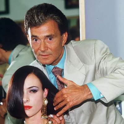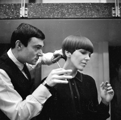 Sassoon grew up in England. After serving in the Israeli army, he trained to be a hairstylist (or hairdresser as it was known in those days) before opening his first salon in London in 1954. Sassoon is probably best known for the posh pixie he gave Mia Farrow for her role in the 1968 horror film Rosemary’s Baby. He was also the brains behind the wash-and-go “Sassoon bob” — a short and straight style offering a lot of swing. I, of course, flaunted a bob-like hairstyle for the better part of the 1990s.