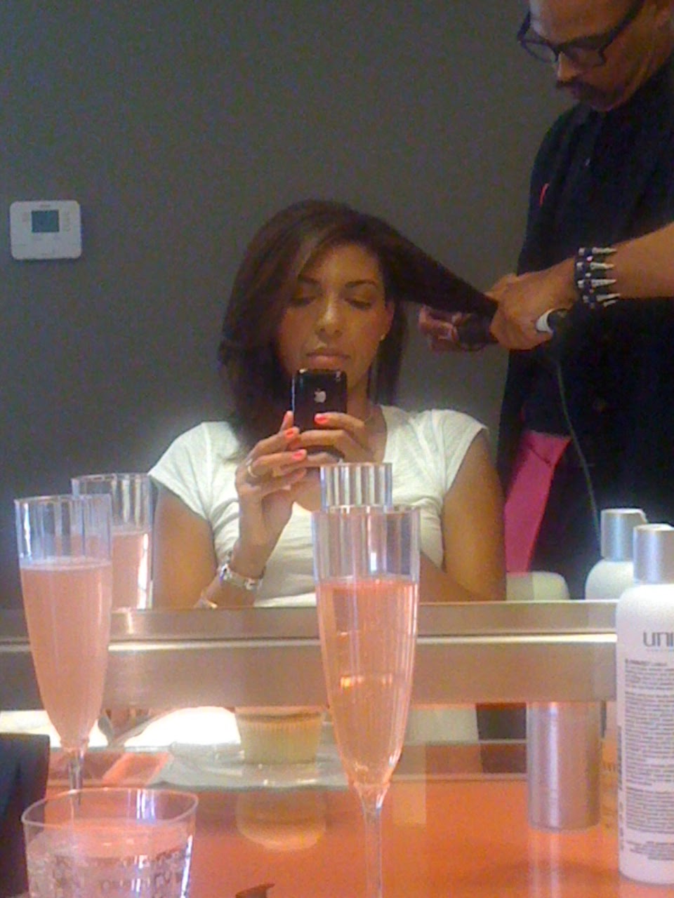I met my sassy stylist, Blake, and was immediately offered a champagne cocktail (courtesy of Stephi’s) and cupcake. I could get used to this, I thought. As I sipped on bubbles, I browsed the hairstyle menu. Blo had seven sexy styles to choose from (one for every day of the week), so one could literally live there. I was beginning to think I could, too. Being the indecisive individual that I am, I decided to blend “Red Carpet” with “Holly Would” for a feminine and flirty finish.