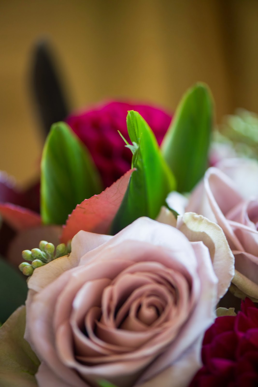 If you ask me, the Polly bouquet is a work of art and way more beautiful than I had initially envisioned. It was crafted of the finest O’hara garden roses, amnesia roses, dahlias, ranunculus and seeded eucalyptus. The finishing touch, and what actually gives the arrangement its name, is its emerald toned tail feathers. Never heard the name Polly mentioned on the blog before? Well, he’s a parrot. One day, 30 years ago, my father brought him home from Panama and that tale, my friends, is for my autobiography…or another blog post.