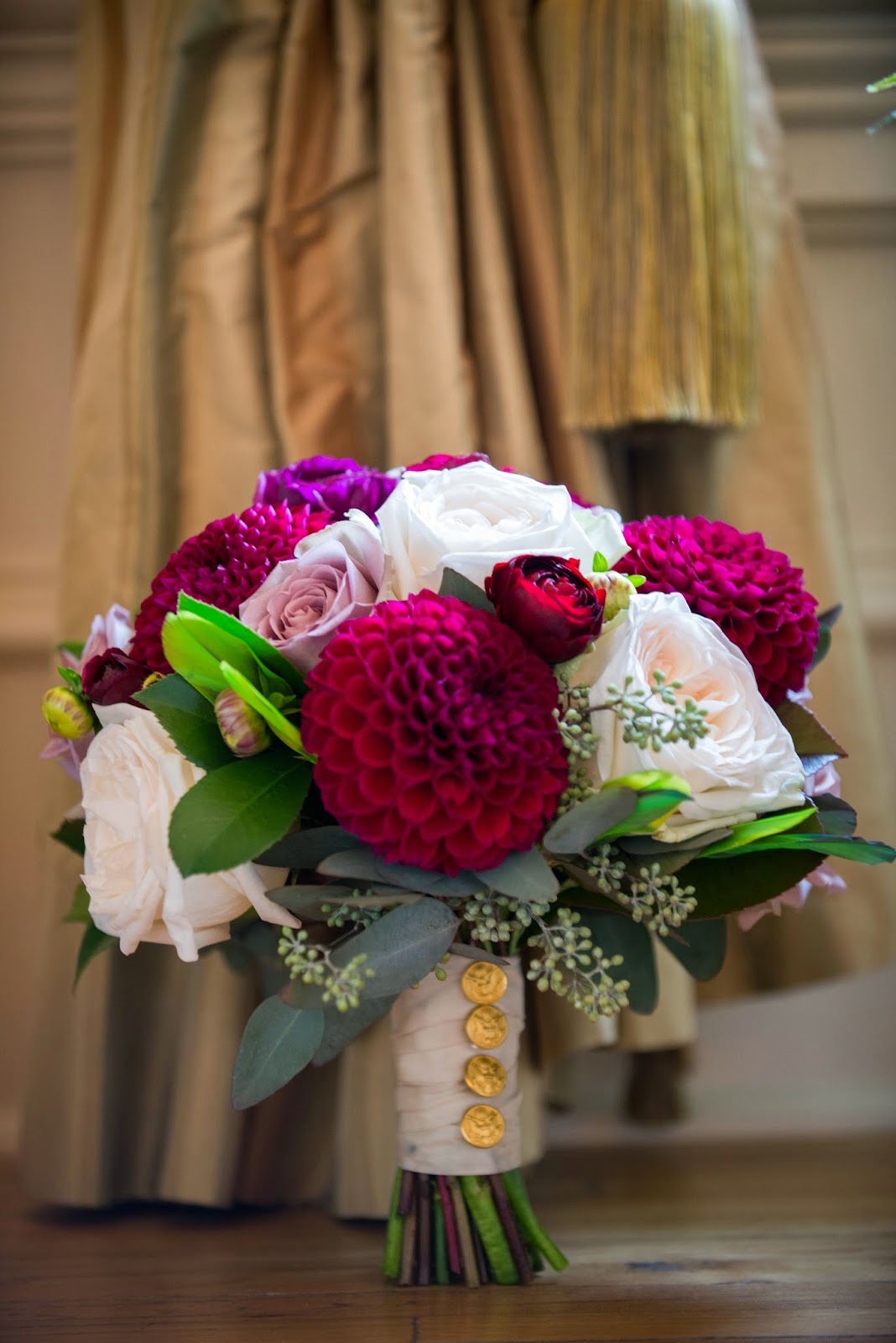 Designed by the creative professionals at Stoneblossom, my flowers were a true testament to my vision. Well, “our” vision to be exact. I can’t leave Mr. Chat out in the cold. We longed for an old-world opulence blended with a modern-day romance and we captured this aura by way of royal tones such as gold, magenta, ruby and emerald. This was a look and feel Sherry Scott, event manager and designer at the Rhode Island-based florist, forged against the already-lush and well-manicured landscape at The Chanler at CliffWalk.