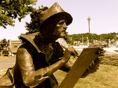 During a recent stroll along Gloucester Harbor with Mr. Chat, I was immediately drawn to a statue of Fitz Henry Lane sitting atop a hill and overlooking the ocean. Adjacent to the status was the artist’s former residence — a magnificent seven gable, granite house with a third floor studio boasting panoramic views of the town. One step into Lane’s shoes and I became inspired (as the mural suggests). I hope you enjoy my postcards from Gloucester.