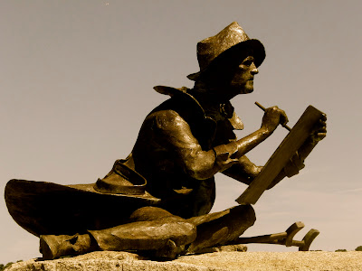 During a recent stroll along Gloucester Harbor with Mr. Chat, I was immediately drawn to a statue of Fitz Henry Lane sitting atop a hill and overlooking the ocean. Adjacent to the status was the artist’s former residence — a magnificent seven gable, granite house with a third floor studio boasting panoramic views of the town. One step into Lane’s shoes and I became inspired (as the mural suggests). I hope you enjoy my postcards from Gloucester.