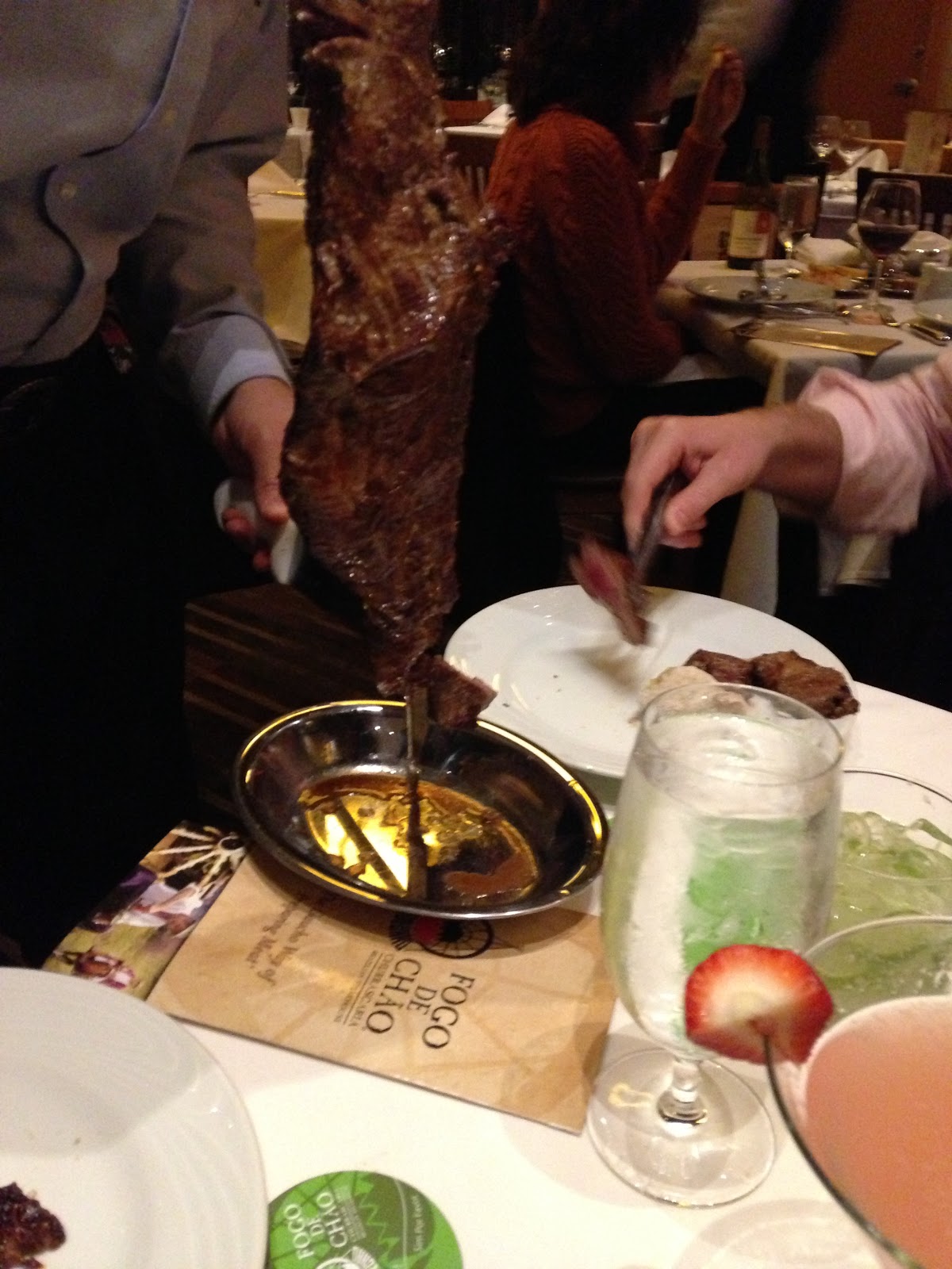 The hottest spot in Boston for skewers of succulent steaks is none other than Fogo de Chão. Pronounced fo-go dèe shoun, the southern Brazilian steakhouse recently opened in the Back Bay space which formerly housed The Palm. I had the pleasure of stuffing my face dining on a montage of mouthwatering meats with Mr. Chat one brisk November evening.